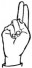 На ћирилици написано АНДРИЈА БАИНОВИЋ састоји се из 15 слова [?]. Исписано ћириличном једноручном азбуком за глувонеме: